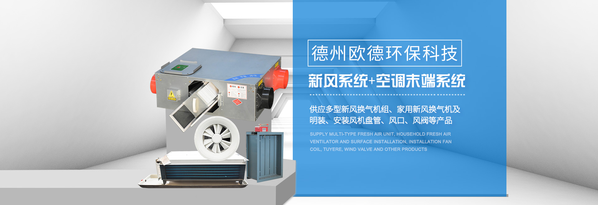 德州歐德環(huán)保科技有限公司位于山東省德州市武城經(jīng)濟(jì)開發(fā)區(qū),是一家集空調(diào)設(shè)備產(chǎn)、研、銷相結(jié)合的現(xiàn)代化企業(yè)。歐德以技術(shù)水平、服務(wù)標(biāo)準(zhǔn),贏得客戶的信任。公司建有現(xiàn)代化水平的商用空調(diào)設(shè)備生產(chǎn)線與末端設(shè)備生產(chǎn)線,可定制生產(chǎn)多型空調(diào)設(shè)備。  公司主要產(chǎn)品:風(fēng)機(jī)(排煙風(fēng)機(jī)、軸流風(fēng)機(jī)、邊墻風(fēng)機(jī)、斜流風(fēng)機(jī)(混流風(fēng)機(jī))、屋頂風(fēng)機(jī)、離心風(fēng)機(jī)、誘導(dǎo)風(fēng)機(jī))、新風(fēng)處理機(jī)組、吊頂式空調(diào)器、風(fēng)機(jī)盤管(臥式暗裝風(fēng)機(jī)盤管、臥式明裝風(fēng)機(jī)盤管、立式明裝風(fēng)機(jī)盤管、卡式風(fēng)機(jī)盤管等),各類通風(fēng)管道(共板法蘭風(fēng)管、酚醛風(fēng)···